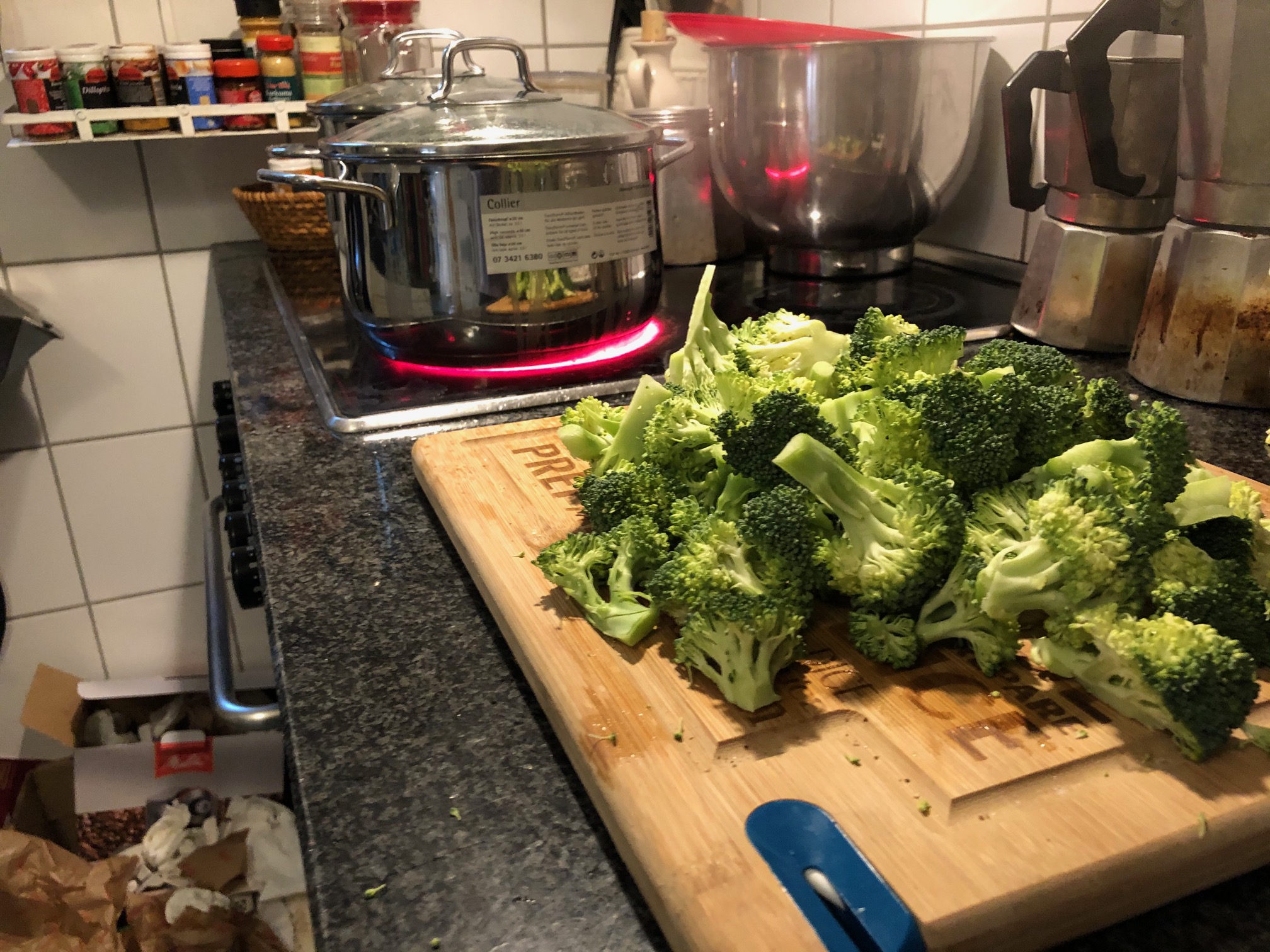 Wasser für Kartoffeln und Brokkoli aufsetzen 2 Töpfen