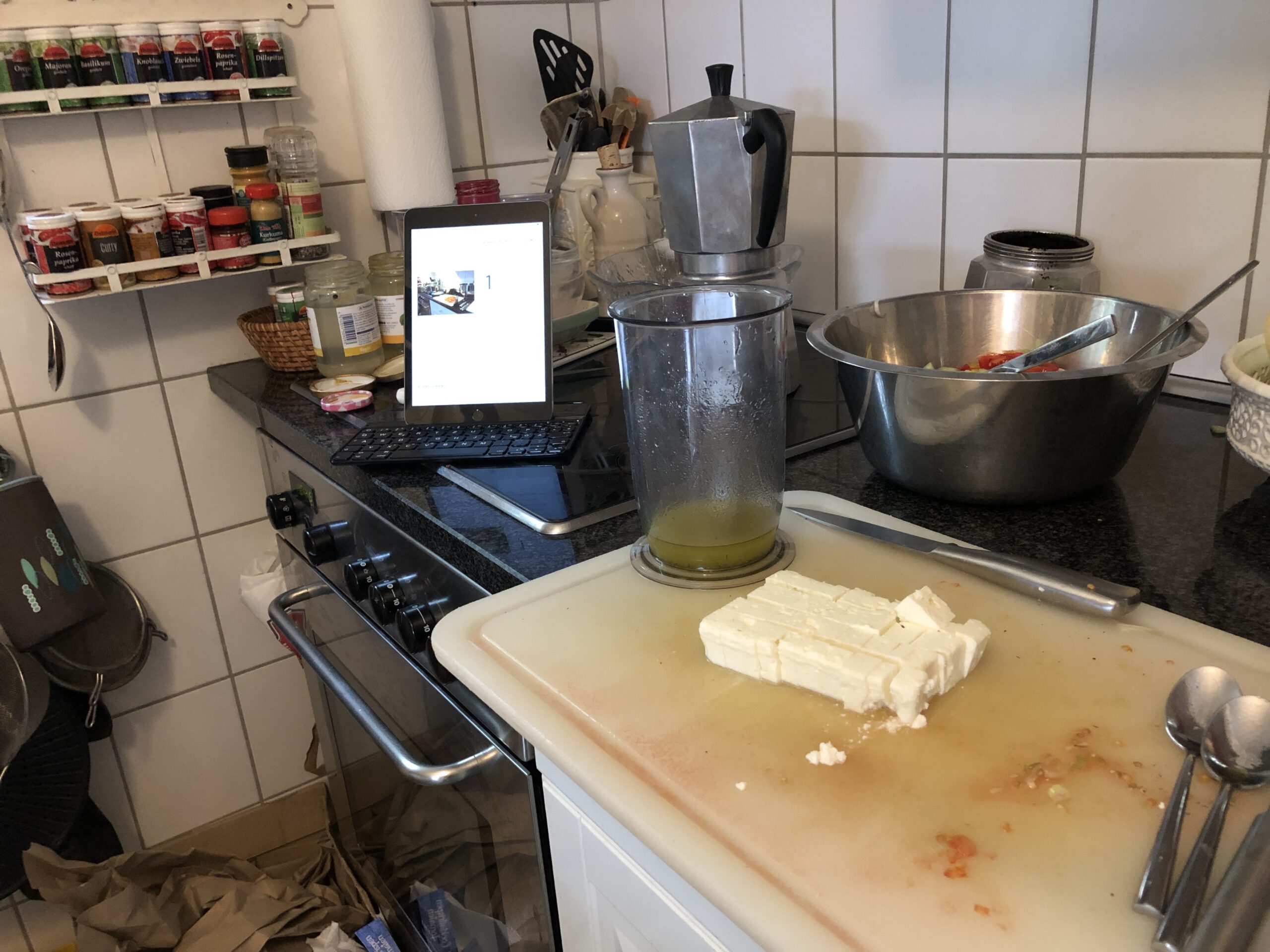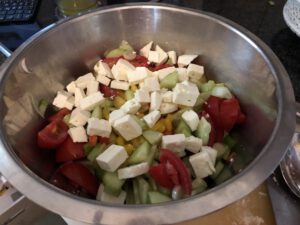 Feta Käse in Würfel schneiden