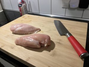 Hähnchen waschen und in Würfel schneiden
